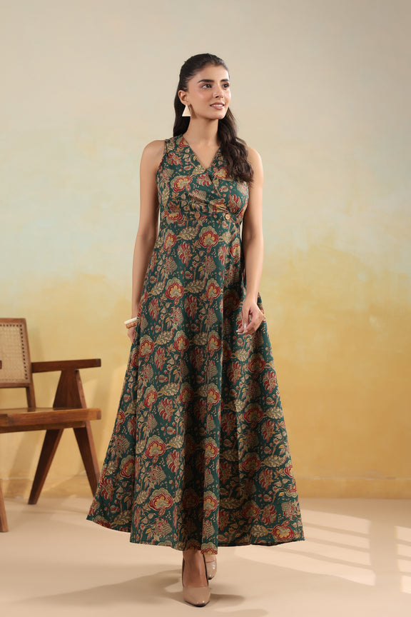 A breezy and elegant dress crafted from pure cotton, featuring traditional hand-block prints and a flattering silhouette perfect for everyday wear or casual outings.
