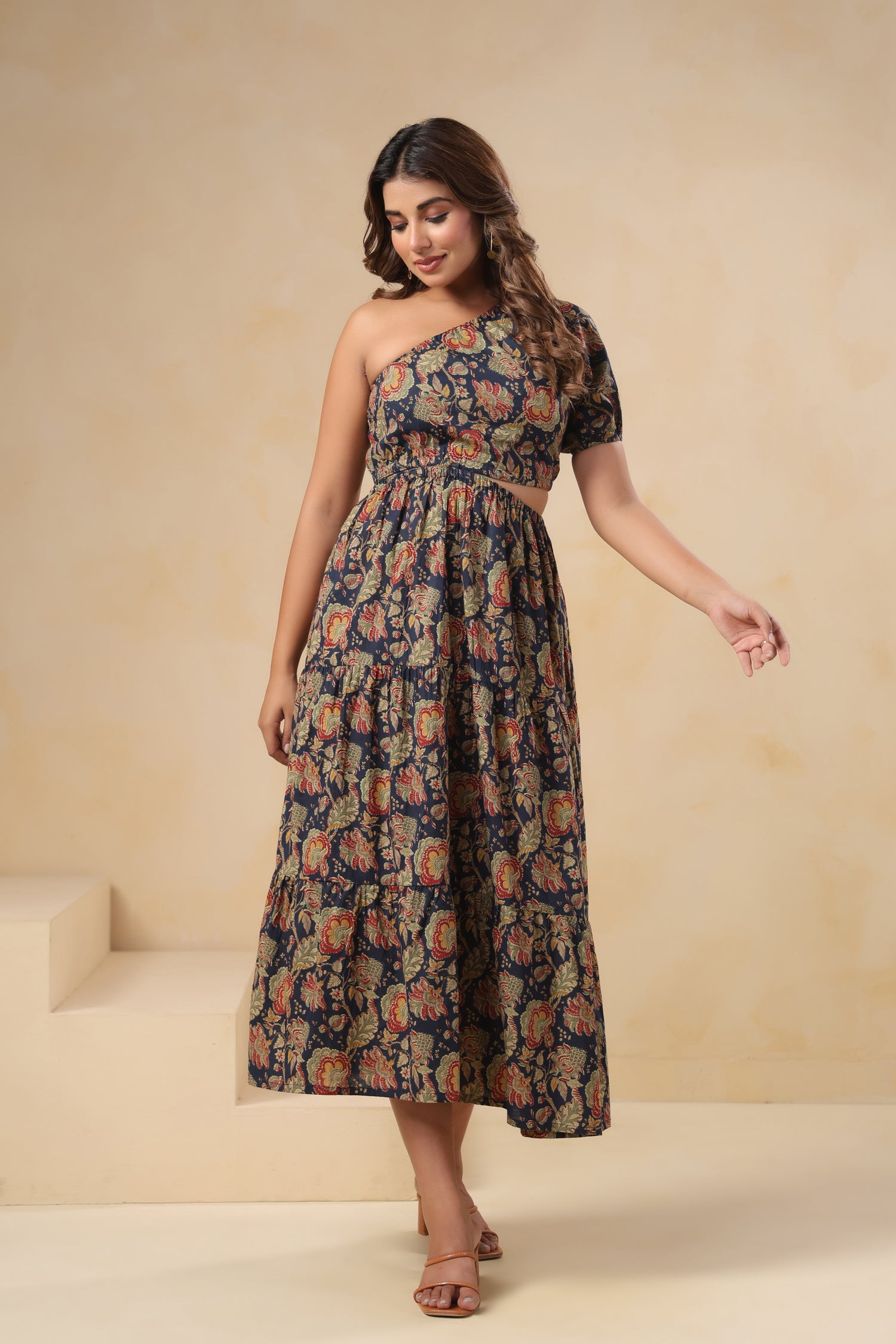 A breezy and elegant indigo dress crafted from pure cotton, featuring traditional hand-block prints and a flattering silhouette perfect for everyday wear or casual outings.
