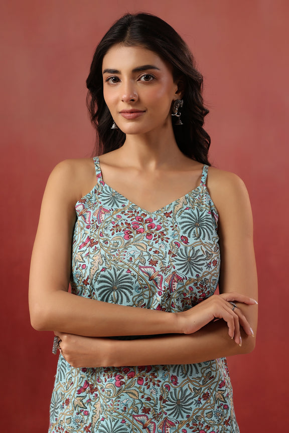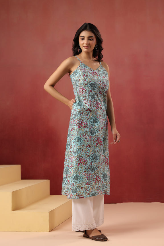 A breezy and elegant kurti crafted from pure cotton, featuring traditional hand-block prints and a flattering silhouette perfect for everyday wear or casual outings.