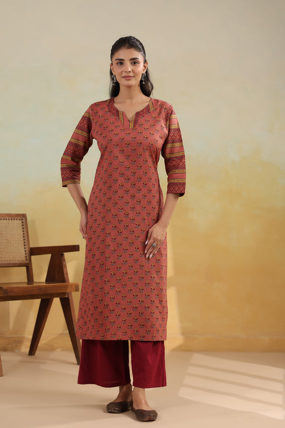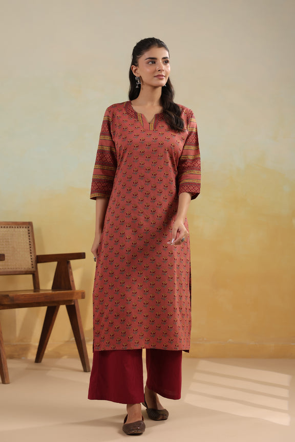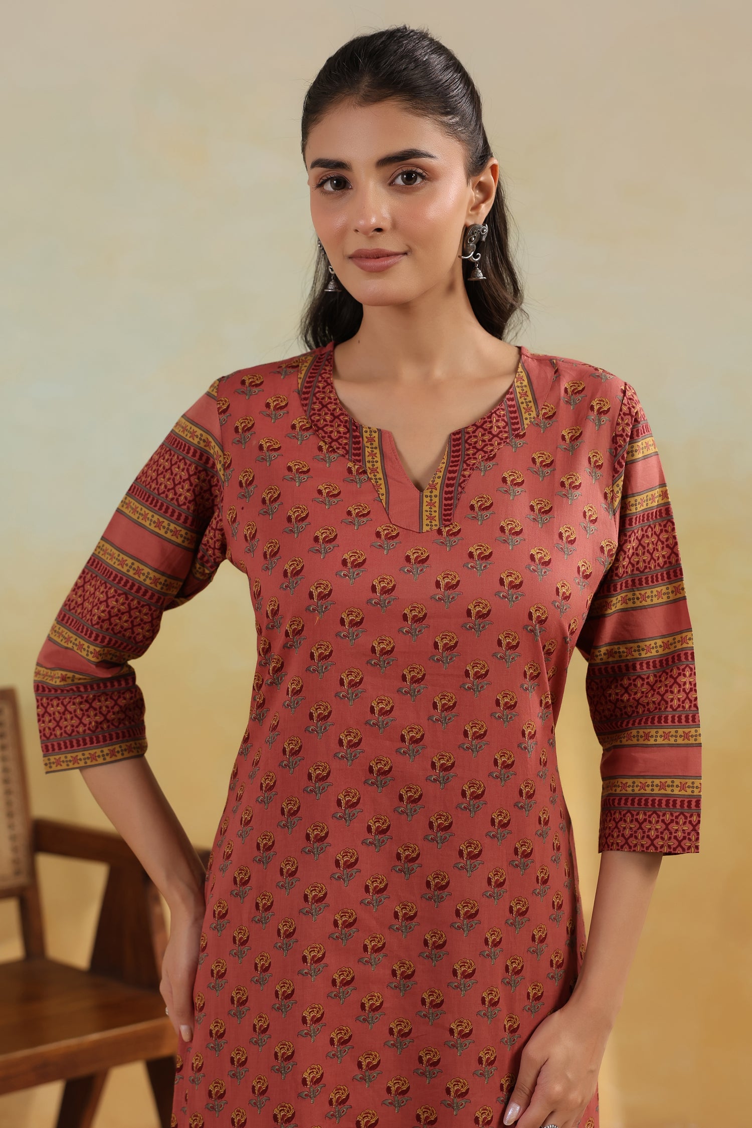 A breezy and elegant kurti crafted from pure cotton, featuring traditional hand-block prints and a flattering silhouette perfect for everyday wear or casual outings.